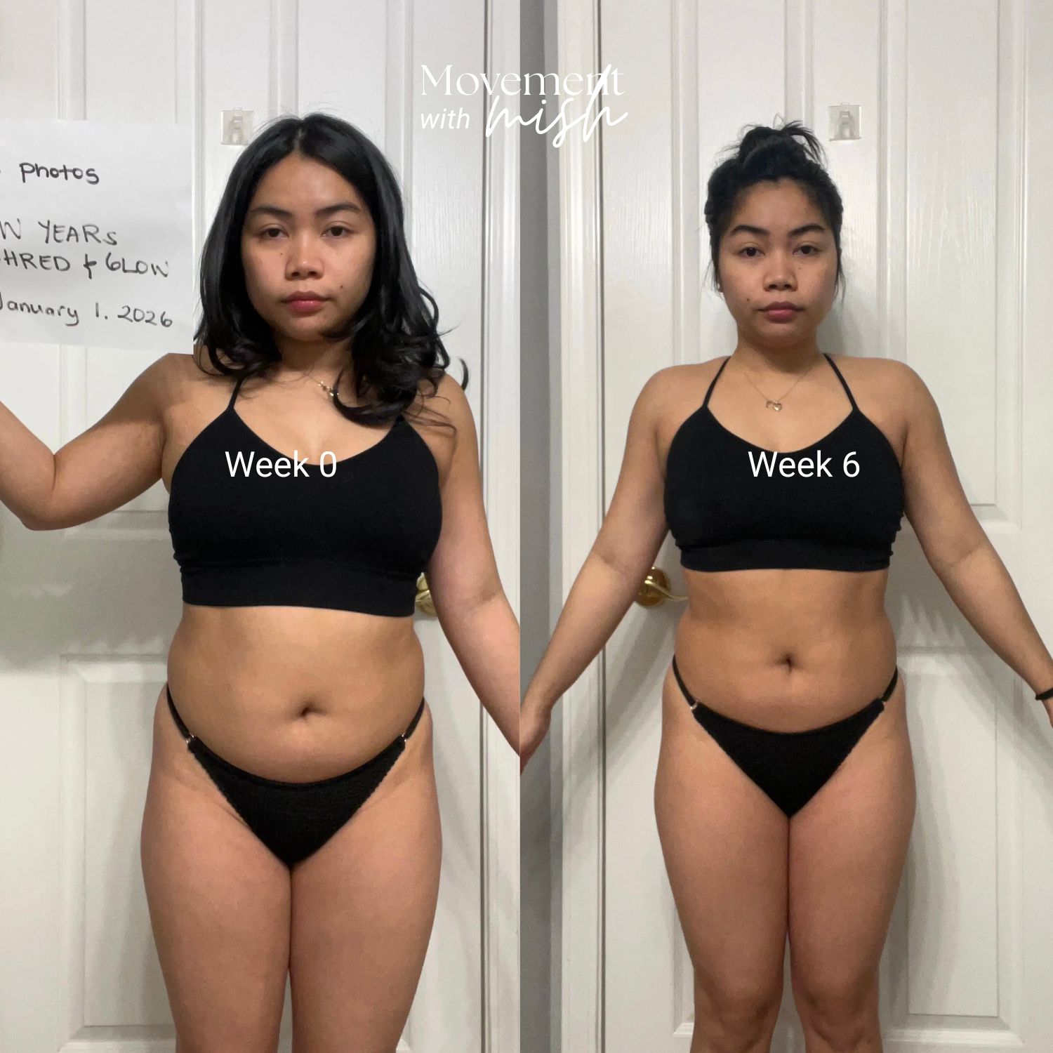 At Movement with Mish, my biggest priority is helping our girls build healthy habits and real confidence from the inside out. We're all about creating a lifestyle that supports your physical and mental wellbeing, not obsessing over what you look like. Nail the input, control what you can, and the results will come. That said, we know a good transformation photo can be super inspiring so here’s a little peek at what some of our girls have achieved, some within as little as 6 weeks.